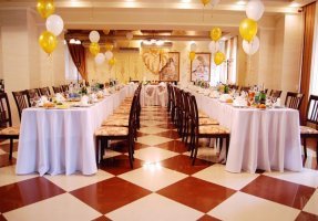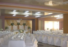 В заведении два зала: банкетный, рассчитанный на 200 персон, и ресторанный (основной) – на 80 человек. В каждом помещении есть танцевальная площадка и зоны отдыха, где гости смогут спокойно пообщаться и отвлечься от суеты.