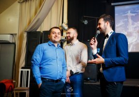 Привет, меня зовут Денис Ткаченко, я – ведущий. Праздники – это мое всё. И, наверное, самое большое счастье в моей профессии – это возможность окунаться в невероятные события, бурные, весёлые, наполненные чувствами и эмоциями – настолько часто, насколько хватит собственных сил. Мне не приходилось считать, да уже наверное и сбился бы, как много разных ярких событий я повидал за время работы ведущим. Какое невероятное количество шуток слышал; тостов, которые продирали до слёз; танцев, от которых стены трещали по швам, и как каждый раз, поздно ночью, после очередного веселья, мне хочется взлететь от эмоций, которыми я заряжаюсь. Но одно я знаю точно, огромное спасибо тем влюбленным парам, прекрасным именинникам, весёлым компаниям за то, что позволили, и ещё надеюсь, очень долго будете позволять прикасаться к вашим счастливым мгновениям, смотреть на ваши улыбки, и становиться маленькой частью вашей личной истории.
