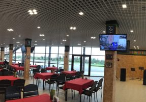 В Вашем распоряжении летние террасы на 80 гостей, уютные беседки, вместимостью до 10 и 20 гостей. Шатер для свадебных церемоний и банкетов примет мероприятия до 300 (120) гостей.В нашем ресторане всегда можно попробовать свежую рыбку утреннего улова, соленья собственного приготовления, традиционные для отдыха на природе шашлыки. Не обойдите вниманием десерты: нежное тирамису, штрудель вишневый, торт трюфельный не оставят равнодушными.
