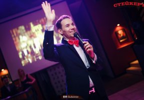 В стоимость входит улетное ведение. Эксклюзивный сценарий, авторские драйвовые конкурсы. Также Я в образе фокусника Покажу интерактивную пародию с гостями, и Веселый комедийный номер Банкетный полицейский, тоже с гостями.