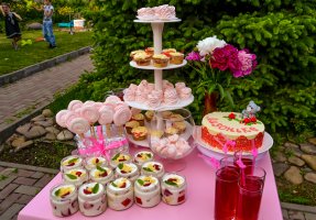 Наши мастера с особым трепетом помогут вам воплотить вашу мечту в реальность. Свадебные торты любой сложности, караваи и шишки, так же сладости для детей, десерты для утонченных гостей, оформление Candy Bar. Мы готовим только из натуральных и качественных продуктов. На нашей кухне нет маргарина. Наши сладости вкусные, нет приторных масляных кремов и растительных сливок.Есть возможность предварительно продегустировать сладости, которые вы хотите заказать на свадьбу.